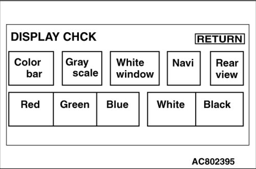 - Display Check: Image check menu (Color bar, Gray scale, White window, Rear view, Navi, full screen display of each color)