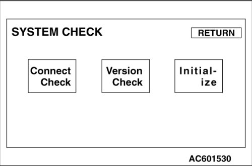 When "System Check" is touched on the MDS (multi-center display) service menu, the menu is switched to the System Check menu. From this menu, the switching to various check modes is performed.