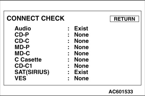 - "SAT(SIRIUS)": Displays "Exist" when the satellite radio tuner (SIRIUS) is connected, and "None" when not connected.