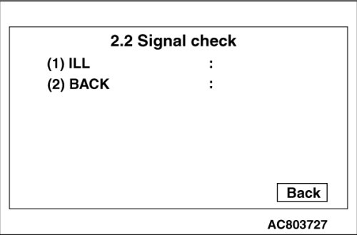 - When "signal check" is touched, the statuses of reverse signal and illumination signal are displayed.