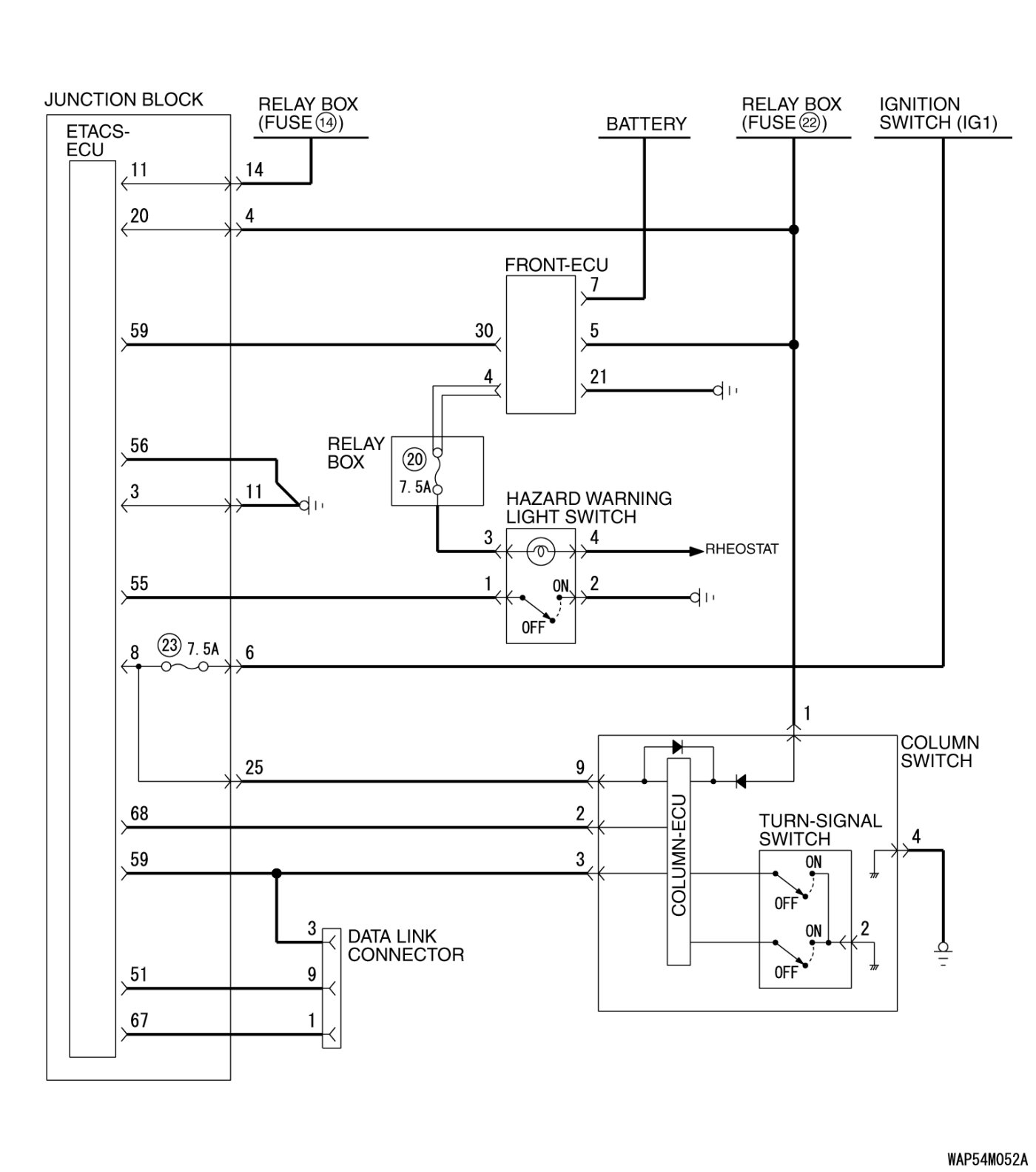 General circuit diagram for the turn-signal light and hazard light
