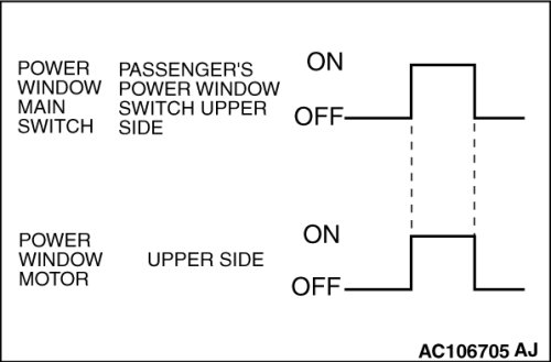 When the passenger's power window switch on the power window main switch is pulled up, the system energizes its respective power window motor, and then the passenger's window glass rises.