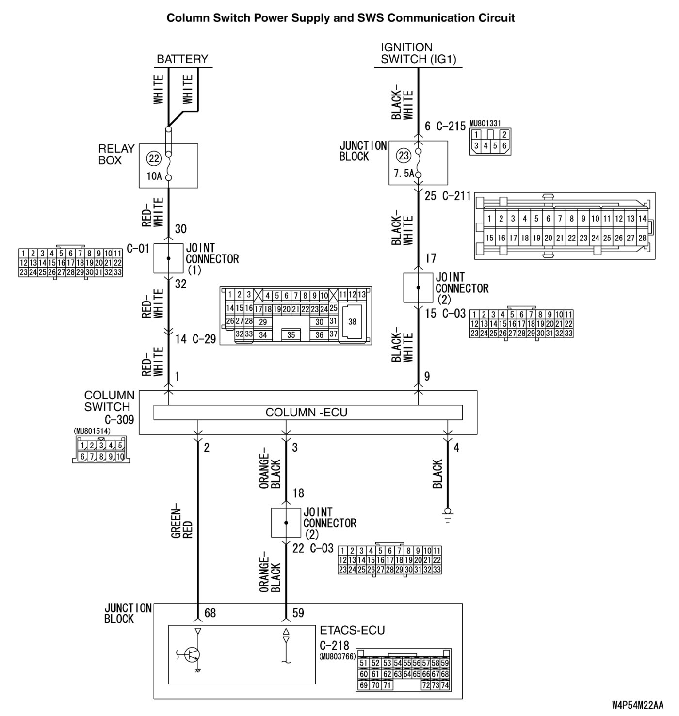 - The power supply to the column switch is provided by the battery and the ignition switch (IG1).