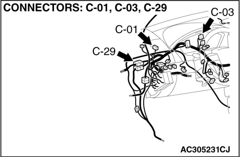 Also check joint connector C-03 for loose, corroded, or damaged terminals, or terminals pushed back in the connector. If joint connector C-03 is damaged, repair or replace the connector as described in Harness Connector Inspection Harness Connector Inspection.