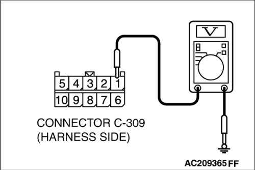 (1)Disconnect column switch connector C-309 and measure the voltage available at the wiring harness side of the connector.