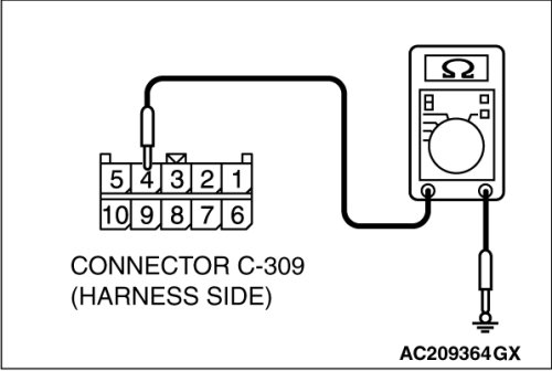 (1)Disconnect column switch connector C-309 and measure the resistance available at the wiring harness side of the connector.