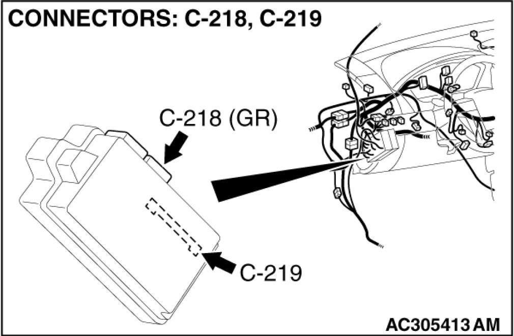 STEP 1. Check ETACS-ECU connectors C-218 and C-219 for loose, corroded or damaged terminals, or terminals pushed back in the connector.