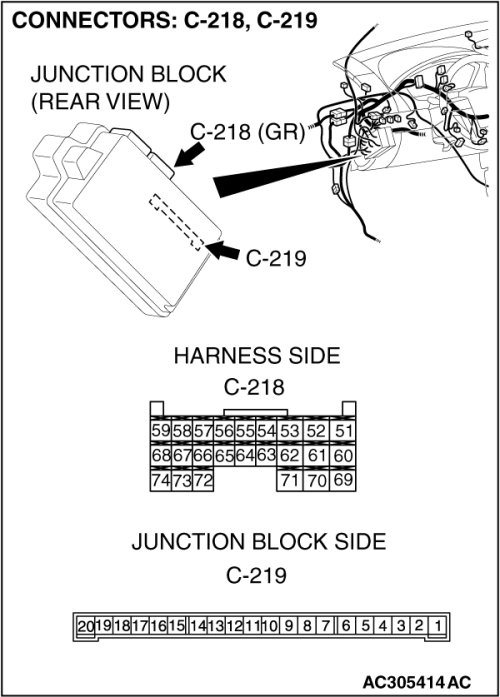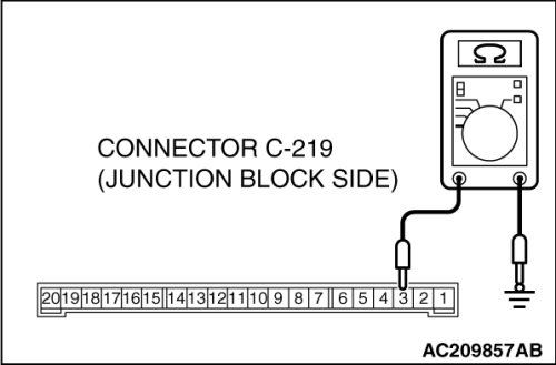 (1)Disconnect ETACS-ECU connector C-219 and measure the resistance available at the junction block side of the connector.
