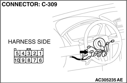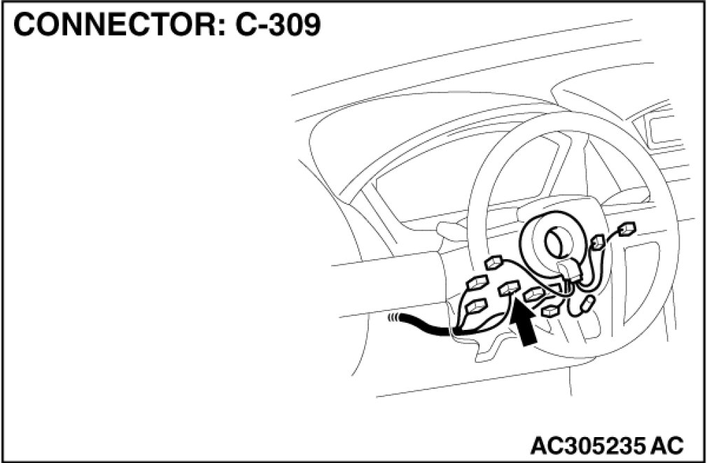 STEP 6. Check column switch connector C-309 for loose, corroded or damaged terminals, or terminals pushed back in the connector.