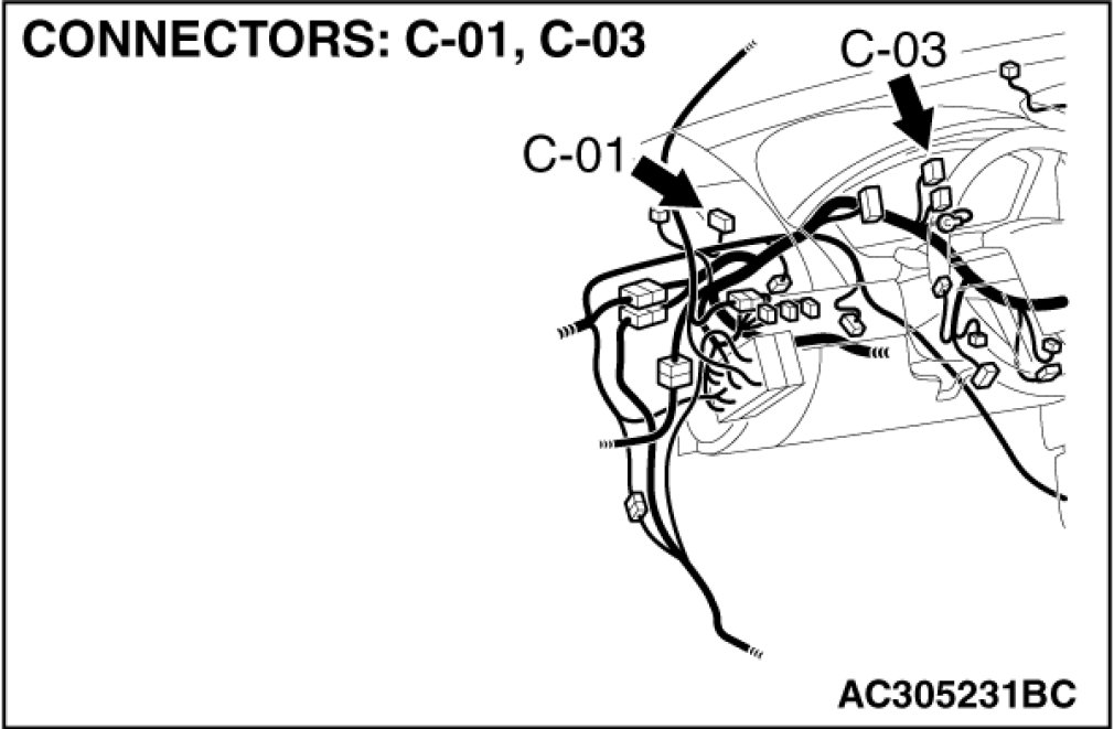 Also check joint connector C-03 for loose, corroded, or damaged terminals, or terminals pushed back in the connector. If joint connector C-03 is damaged, repair or replace the damaged component(s) as described in Harness Connector Inspection Harness Connector Inspection.