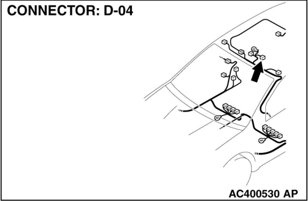 STEP 1. Check sunroof motor assembly connector D-04 for loose, corroded or damaged terminals, or terminals pushed back in the connector.