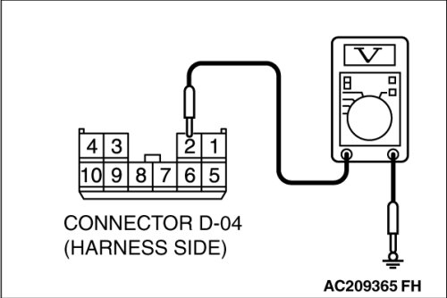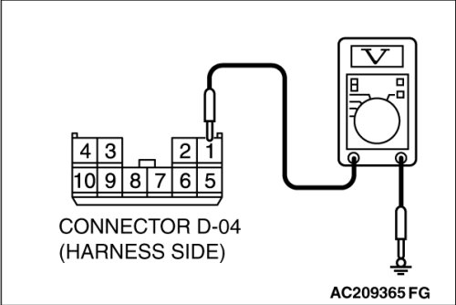 (1)Disconnect sunroof motor assembly connector D-04 and measure the voltage available at the wiring harness side of the connector.