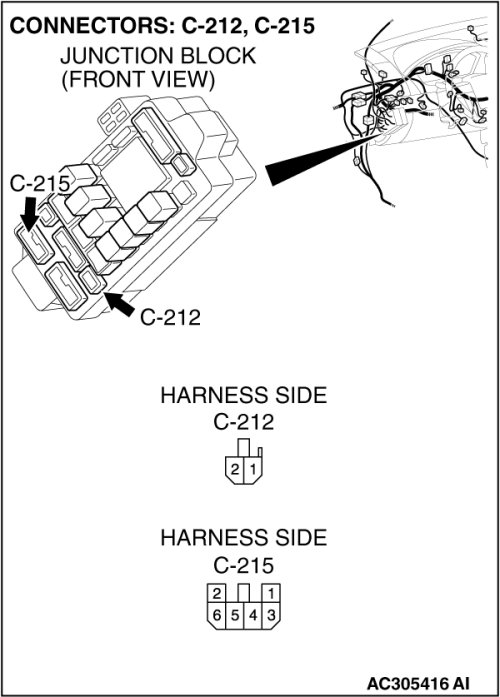 Also check junction block connectors C-212, C-215 and intermediate connector C-27 for loose, corroded, or damaged terminals, or terminals pushed back in the connector. If junction block connector C-212, C-215 or intermediate connector C-27 is damaged, repair or replace the damaged component(s) as described in Harness Connector Inspection Harness Connector Inspection.