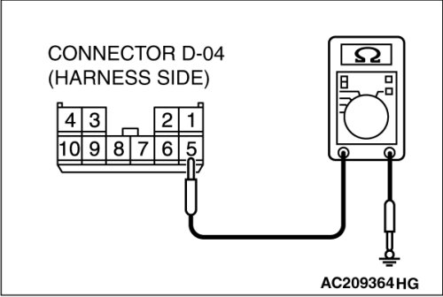 (1)Disconnect sunroof motor assembly connector D-04 and measure the resistance available at the wiring harness side of the connector.