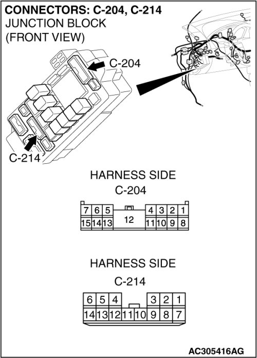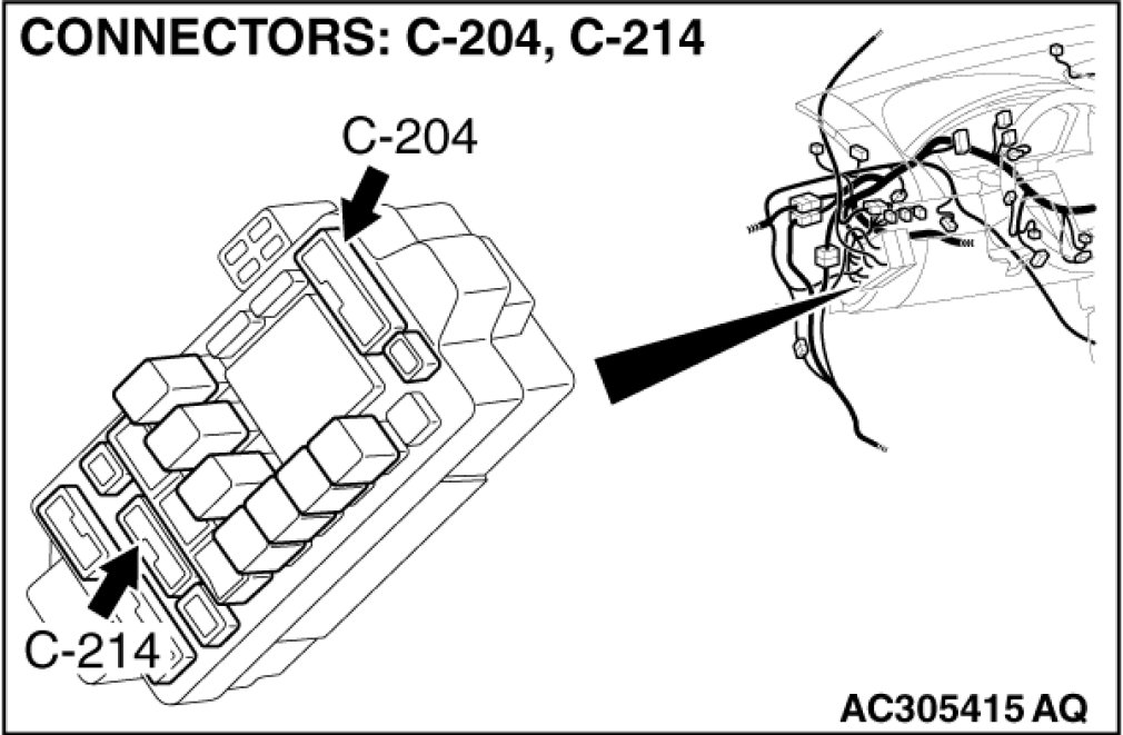 STEP 3. Check ETACS-ECU connector C-219, junction block connectors C-214 and C-204 for loose, corroded or damaged terminals, or terminals pushed back in the connector.