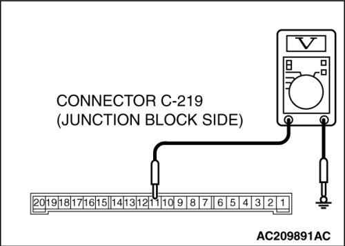 (1)Disconnect ETACS-ECU connector C-219, and measure the voltage available at the junction block side of the connector.
