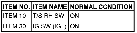 Normal condition is not displayed for "T/S RH SW" : Refer to Inspection Procedure M-5 "ETACS-ECU does not receive any signal from the turn-signal light switch Inspection Procedure M-5."