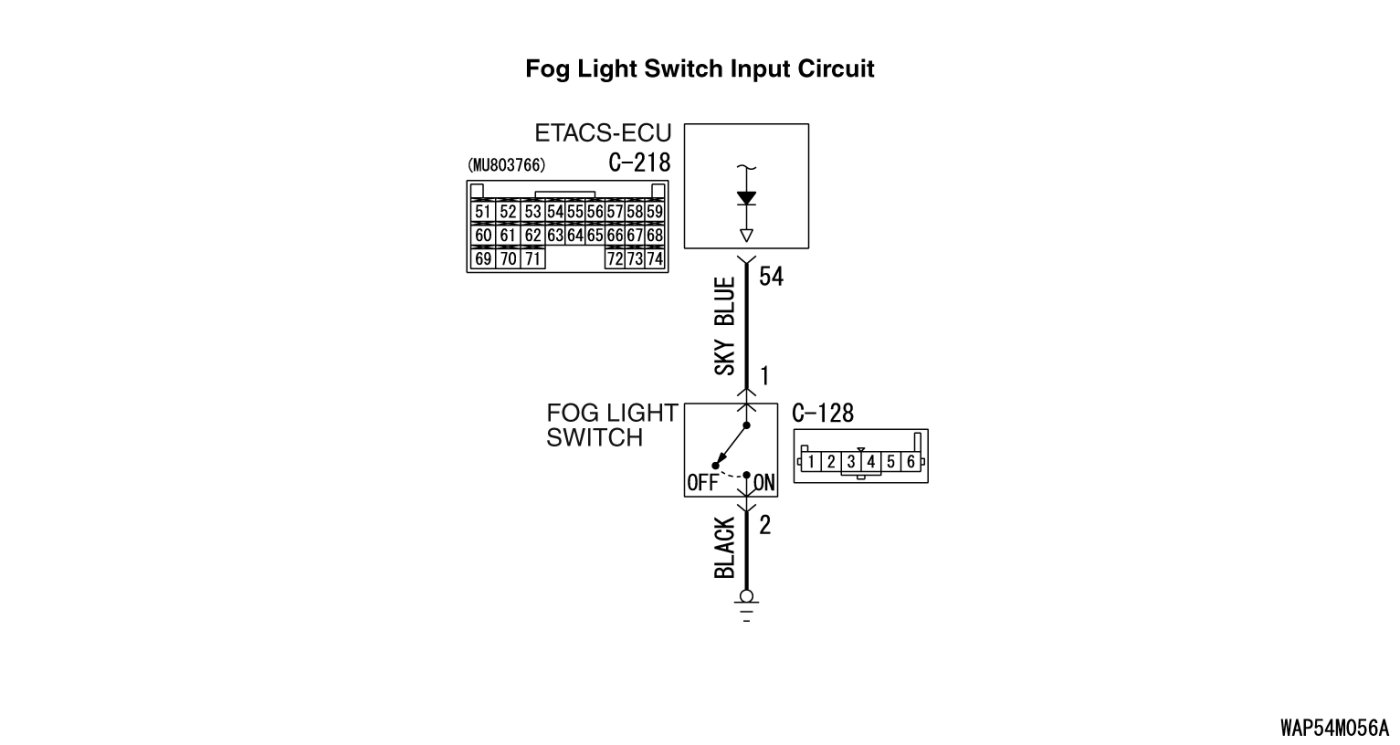 STEP 6. Check the wiring harness between fog light switch connector C-128 (terminal 1) and ETACS-ECU connector C-218 (terminal 54).