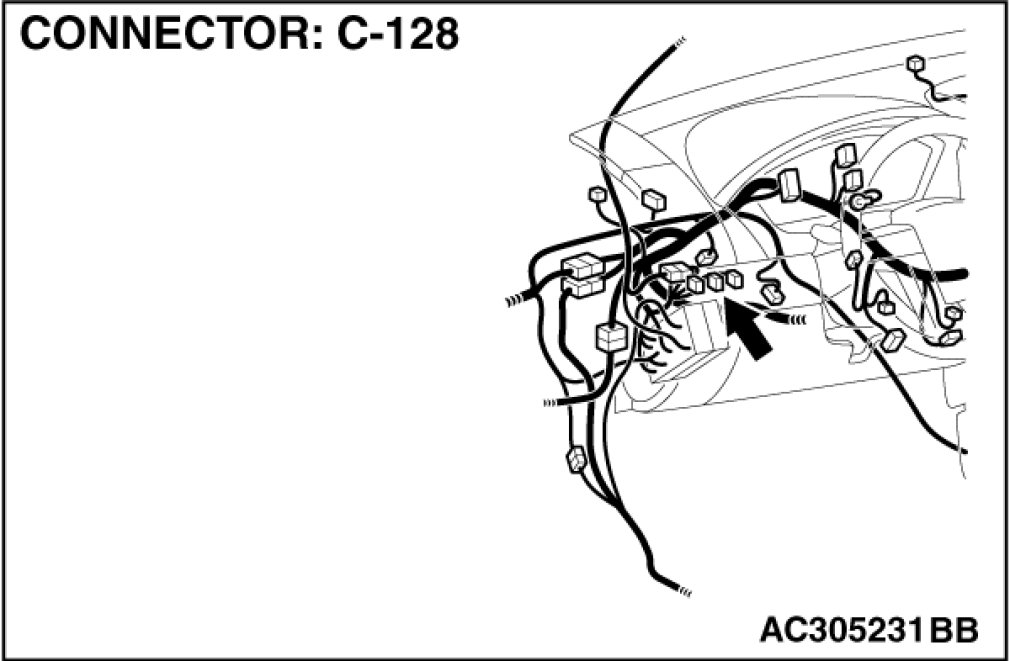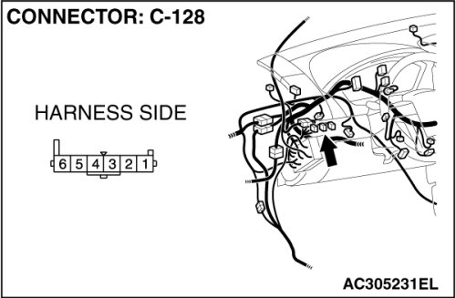 STEP 1. Check fog light switch connector C-128 for loose, corroded or damaged terminals, or terminals pushed back in the connector.