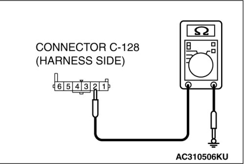 (1)Disconnect fog light switch connector C-128 and measure the resistance available at the wiring harness side of the connector.