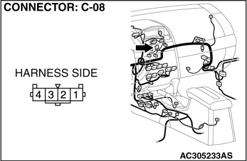 STEP 1. Check hazard warning light switch connector C-08 for loose, corroded or damaged terminals, or terminals pushed back in the connector.