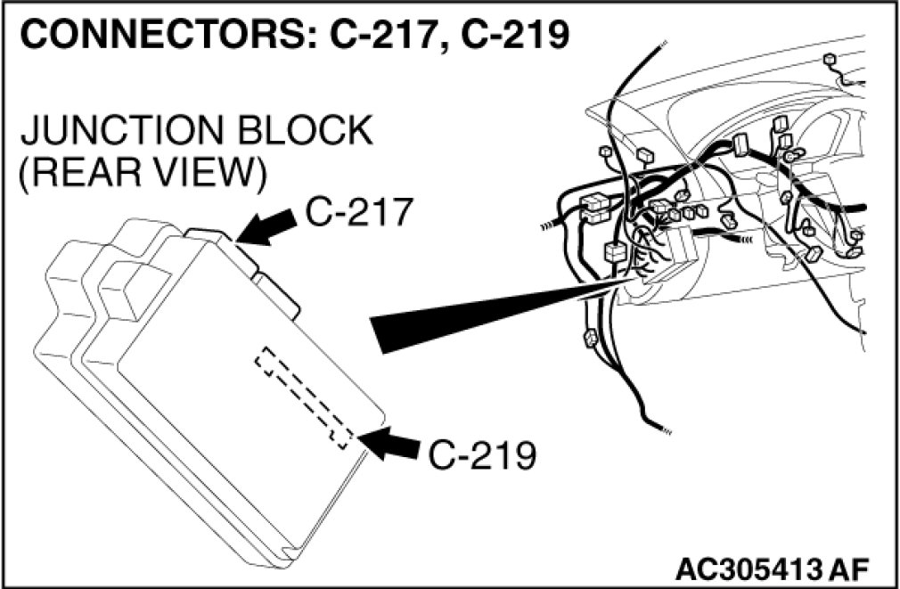 STEP 10. Check ETACS-ECU connector C-217 for loose, corroded or damaged terminals, or terminals pushed back in the connector.