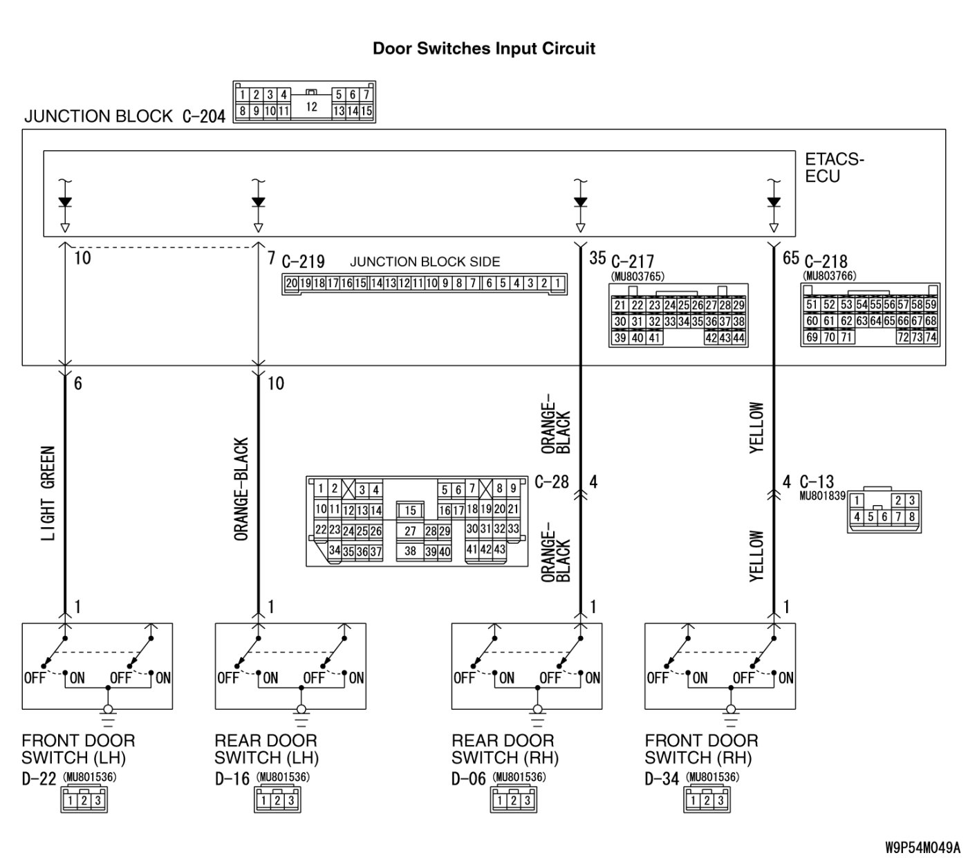 do not work normally. If the signal is not normal, the front or rear door switches or the ETACS-ECU may be defective.
