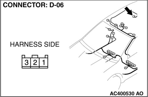 STEP 11. Check the wiring harness between rear door switch (RH) connector D-06 (terminal 1) and ETACS-ECU connector C-217 (terminal 35).