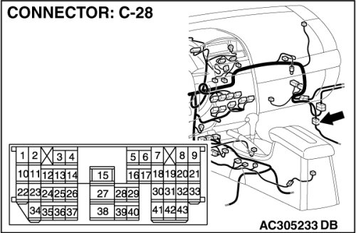 Also check intermediate connector C-28 for loose, corroded, or damaged terminals, or terminals pushed back in the connector. If intermediate connector C-28 is damaged, repair or replace the damaged component(s) as described in Harness Connector Inspection Harness Connector Inspection.