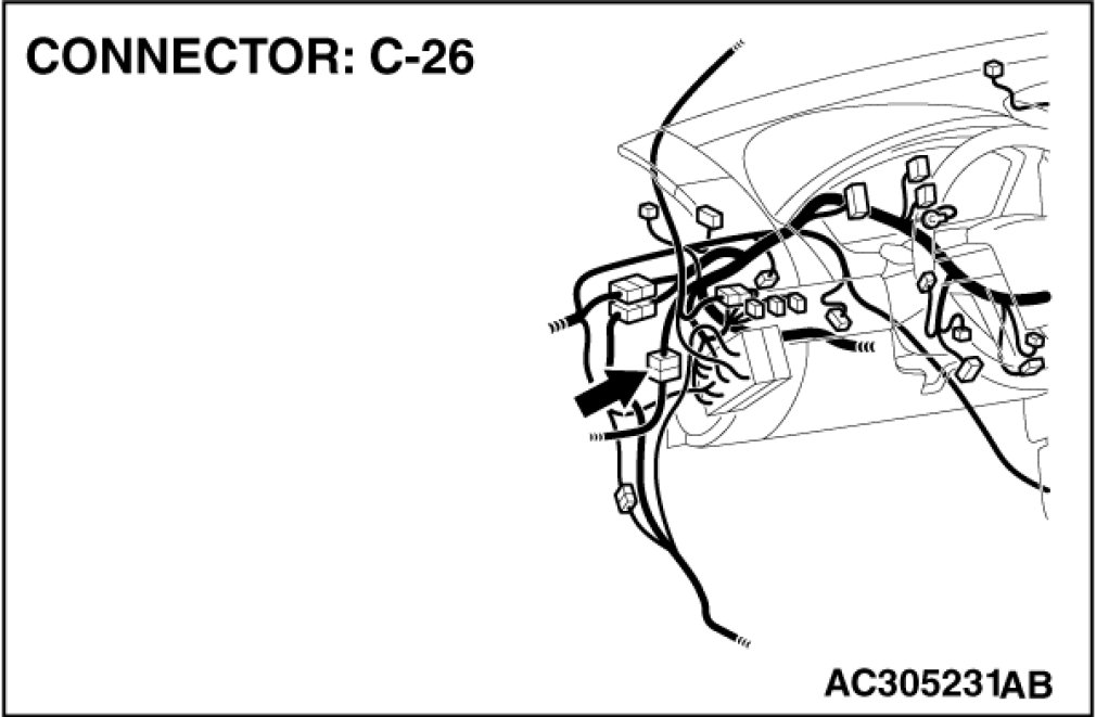 Also check intermediate connectors C-26 for loose, corroded or damaged terminals, or terminals pushed back in the connectors. If intermediate connector C-26 is damaged, repair or replace the damaged component(s) as described in Harness Connector Inspection Harness Connector Inspection.