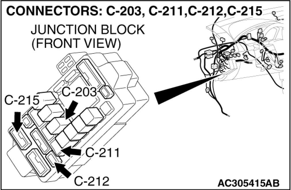 Also check junction block connector C-211 for loose, corroded or damaged terminals, or terminals pushed back in the connector. If junction block connector C-211 is damaged, repair or replace the damaged component(s) as described in Harness Connector Inspection Harness Connector Inspection.