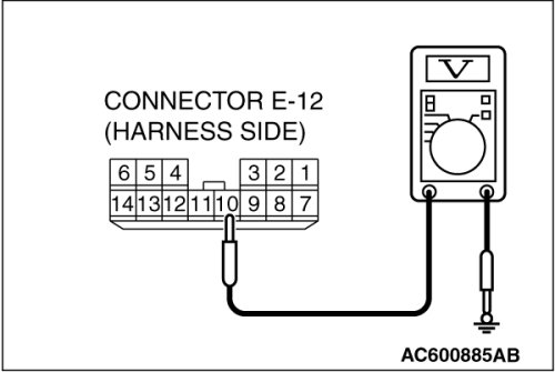 (1)Disconnect power window main switch connector E-12 and measure the voltage available at the harness side of the connector.