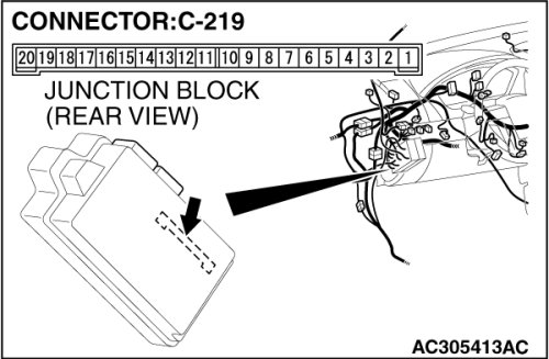 STEP 13. Check ETACS-ECU connector C-219 for loose, corroded or damaged terminals, or terminals pushed back in the connector.