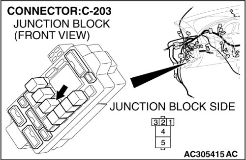 STEP 9. Check power window relay connector C-203 for loose, corroded or damaged terminals, or terminals pushed back in the connector.
