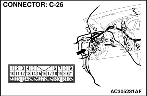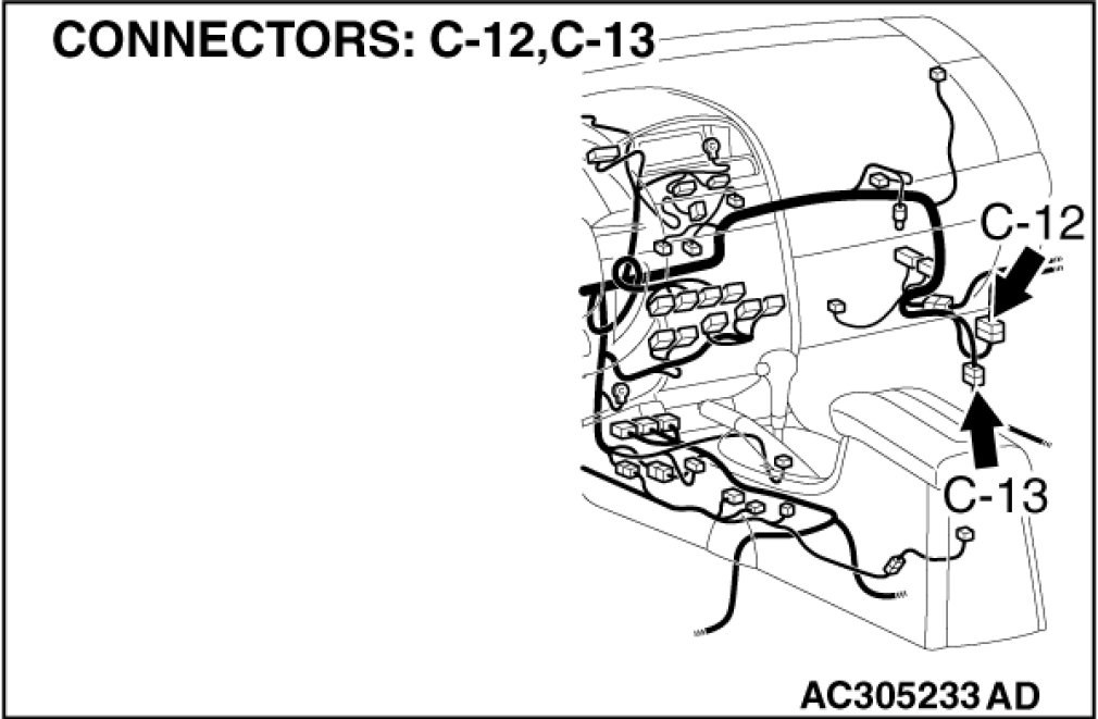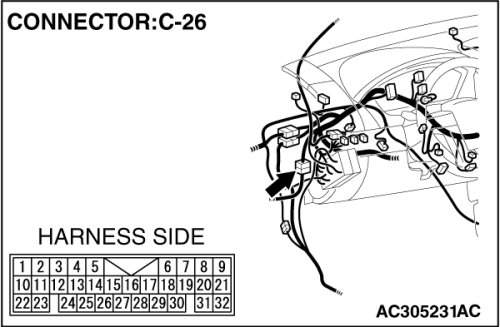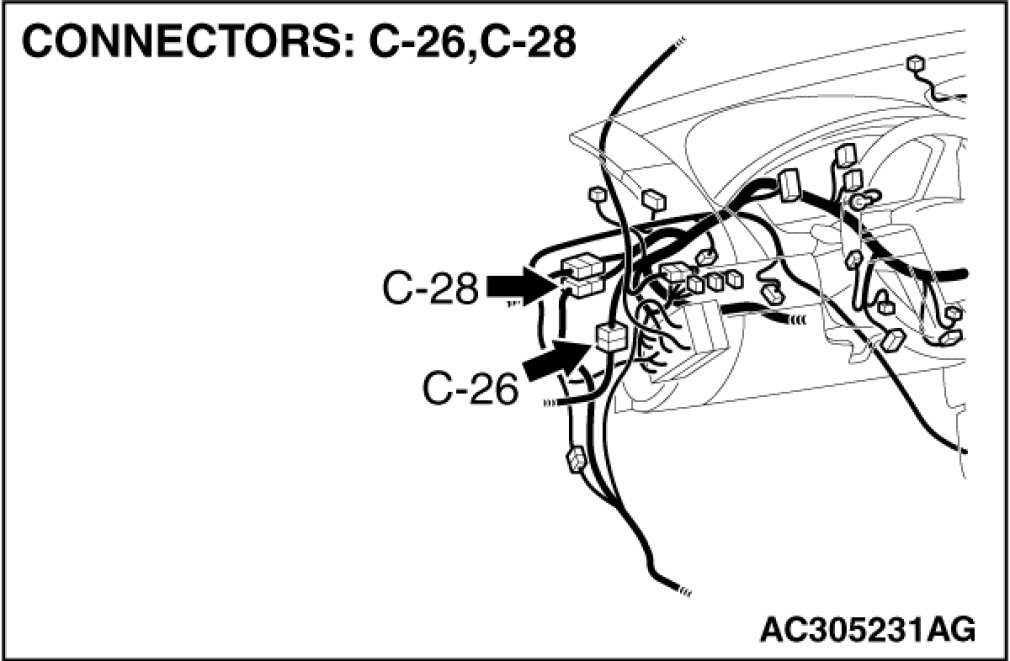 Also check intermediate connectors C-12 and C-26. If intermediate connector C-12 or C-26 is damaged, repair or replace the damaged component(s) as described in Harness Connector Inspection Harness Connector Inspection.