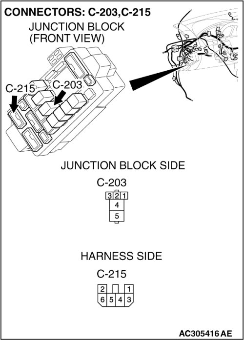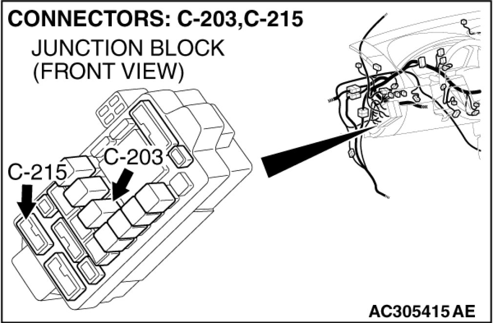 Also check junction block connector C-215 and intermediate connector C-12. If junction block connector C-215 or intermediate connectors C-12 is damaged, repair or replace the damaged component(s) as described in Harness Connector Inspection Harness Connector Inspection.