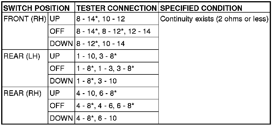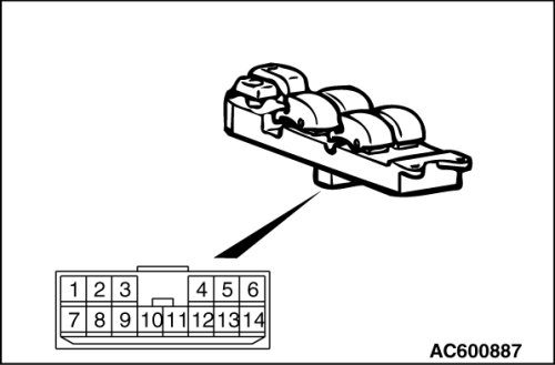 STEP 2. Check each switch on the power window main switch for continuity.