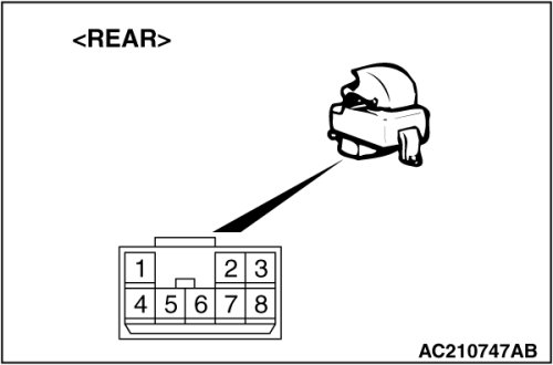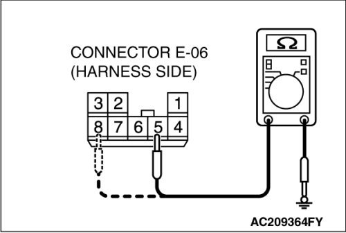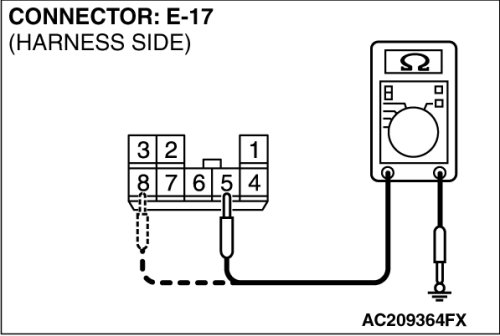 (2)Measure the resistance value between terminal 5 and ground, and also between terminal 8 and ground.