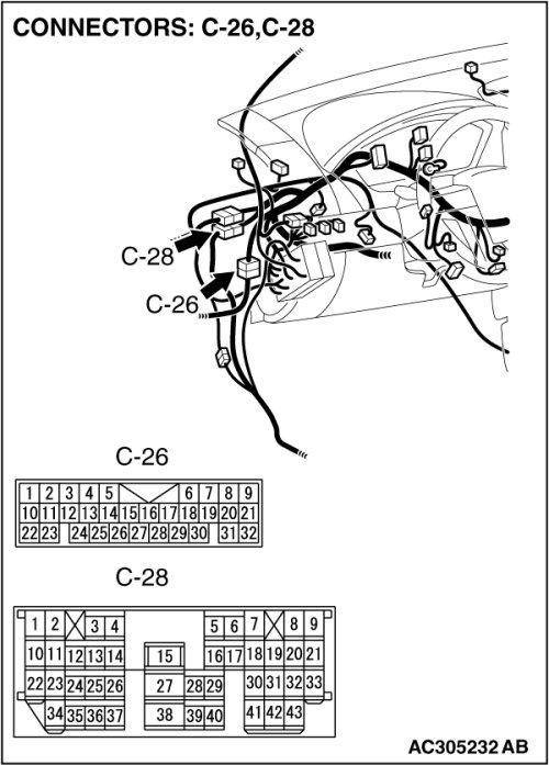 Also check intermediate connectors C-26, C-28 and D-19. If intermediate connector C-26, C-28 or D-19 is damaged, repair or replace the damaged component(s) as described in Harness Connector Inspection Harness Connector Inspection.