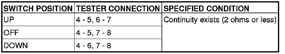 (2)Check continuity when each switch on the power window main switch is operated to "UP"