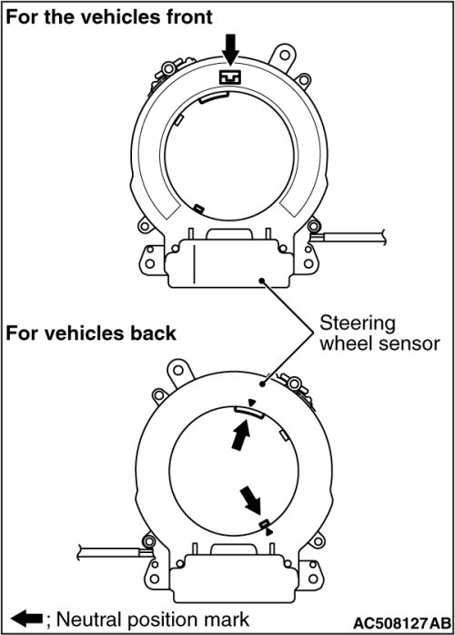 - Always carry out steering wheel sensor calibration after the steering wheel sensor has been installed (Refer to Testing and Inspection ). This is necessary because the TCL/ASC-ECU should update the steering neutral point.