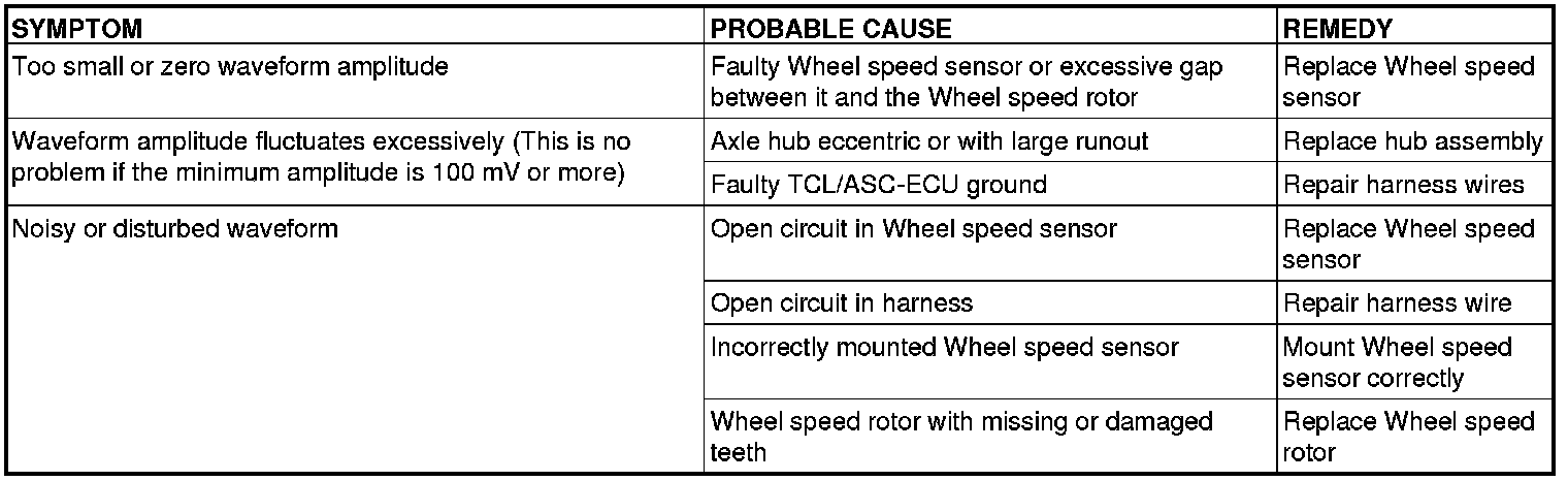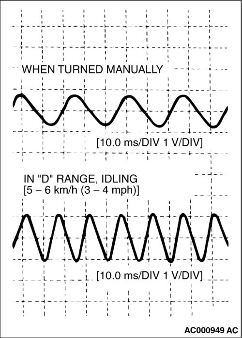 The output waveform is low when the wheel speed is low. Similarly, it will be higher as the wheel speed increases. Waveform may also be observed by driving the vehicle.