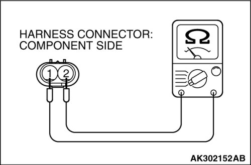 1. Disconnect the engine oil control valve connector and connect special tool MB991658 to the connector on the engine oil control valve side.