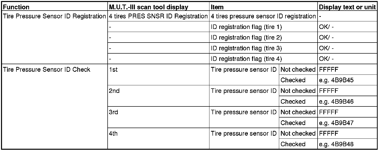 TPMS SPECIAL FUNCTION DATA LIST