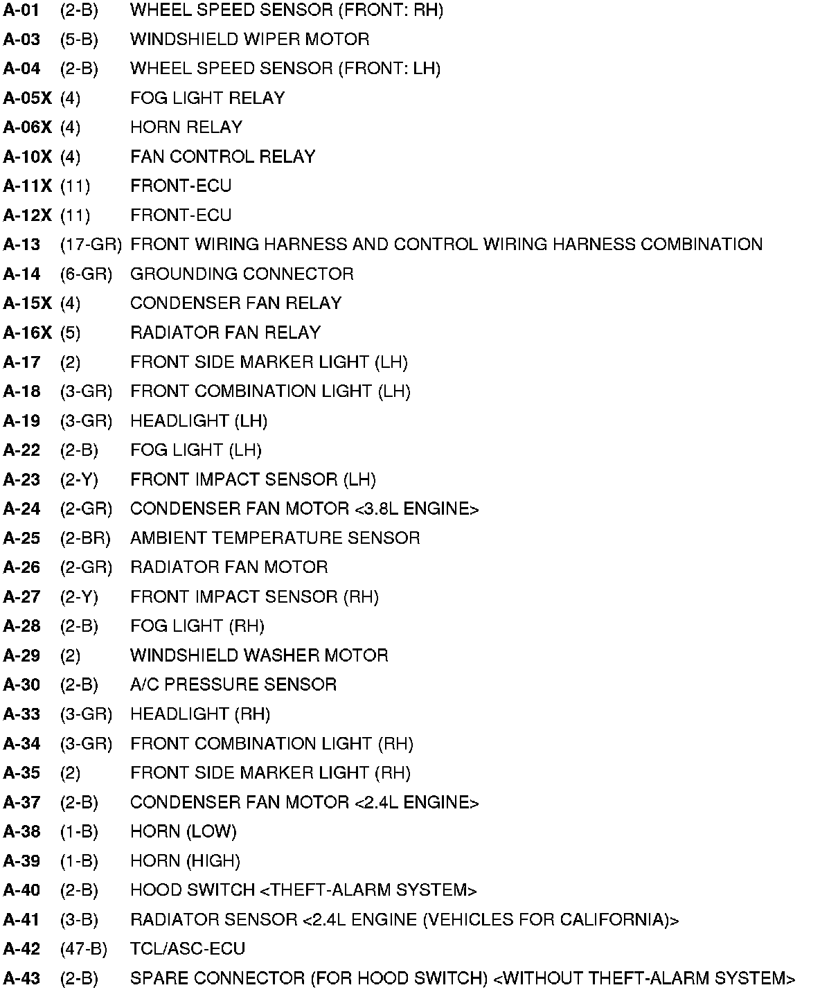 A Connectors - Engine Compartment