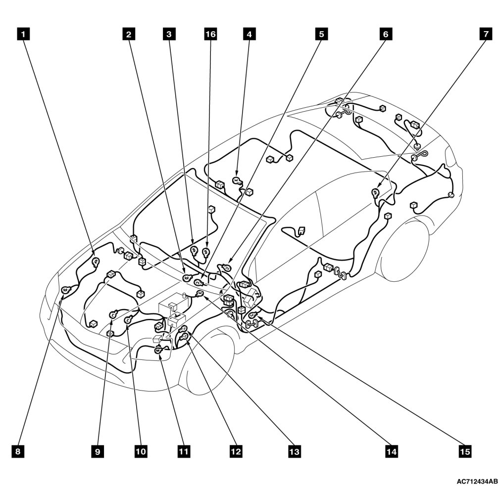 1 to 16 numbers correspond to the body ground point numbers in CIRCUIT DIAGRAMS.