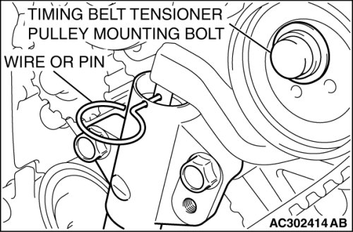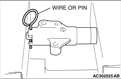 7. Remove wire or pin inserted to timing belt tensioner adjuster.
