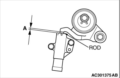 Also the projection of timing belt tensioner adjuster rod (A) is within the standard value, appropriate tension is applied.