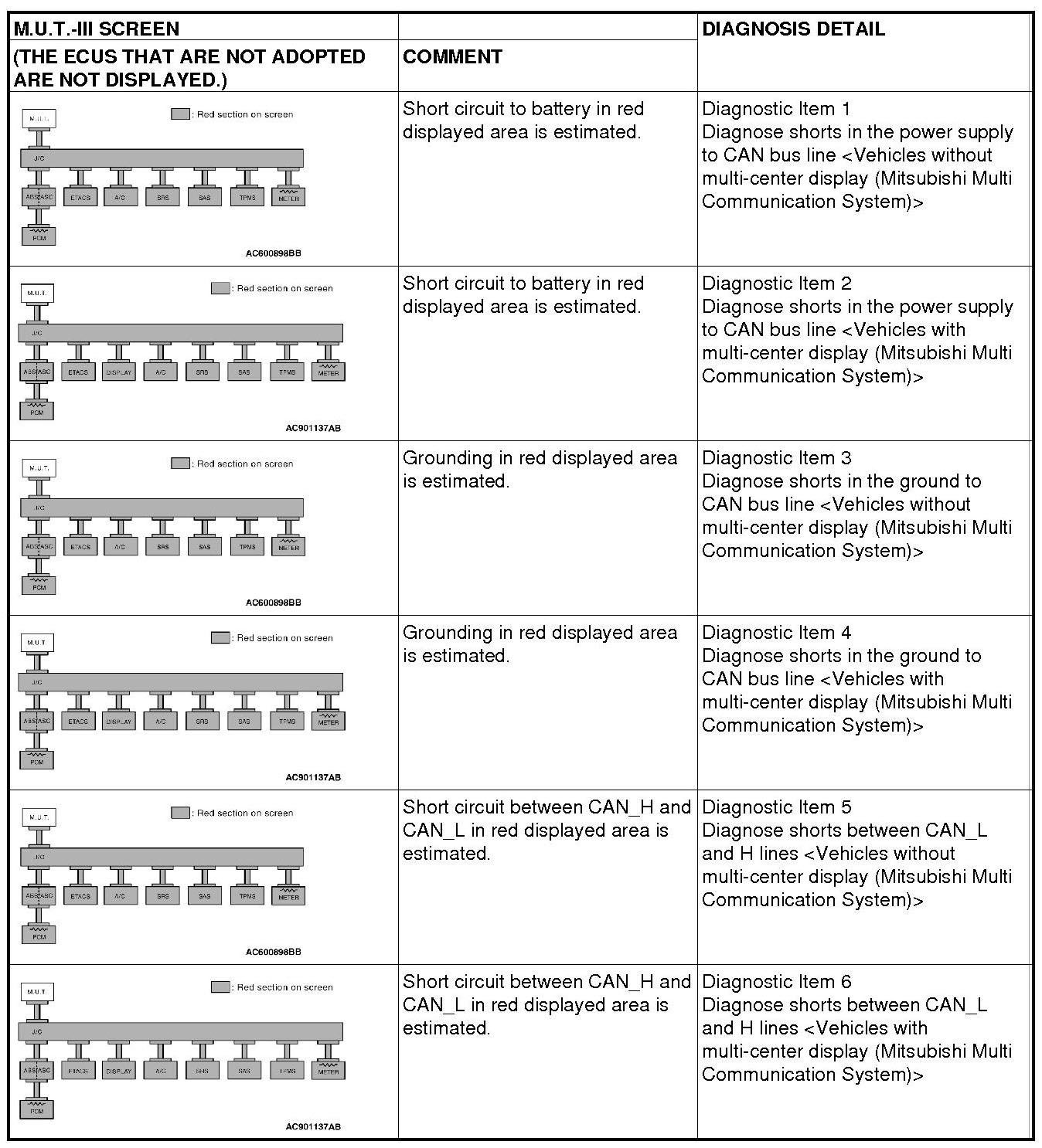 CAN BUS DIAGNOSTICS TABLE
