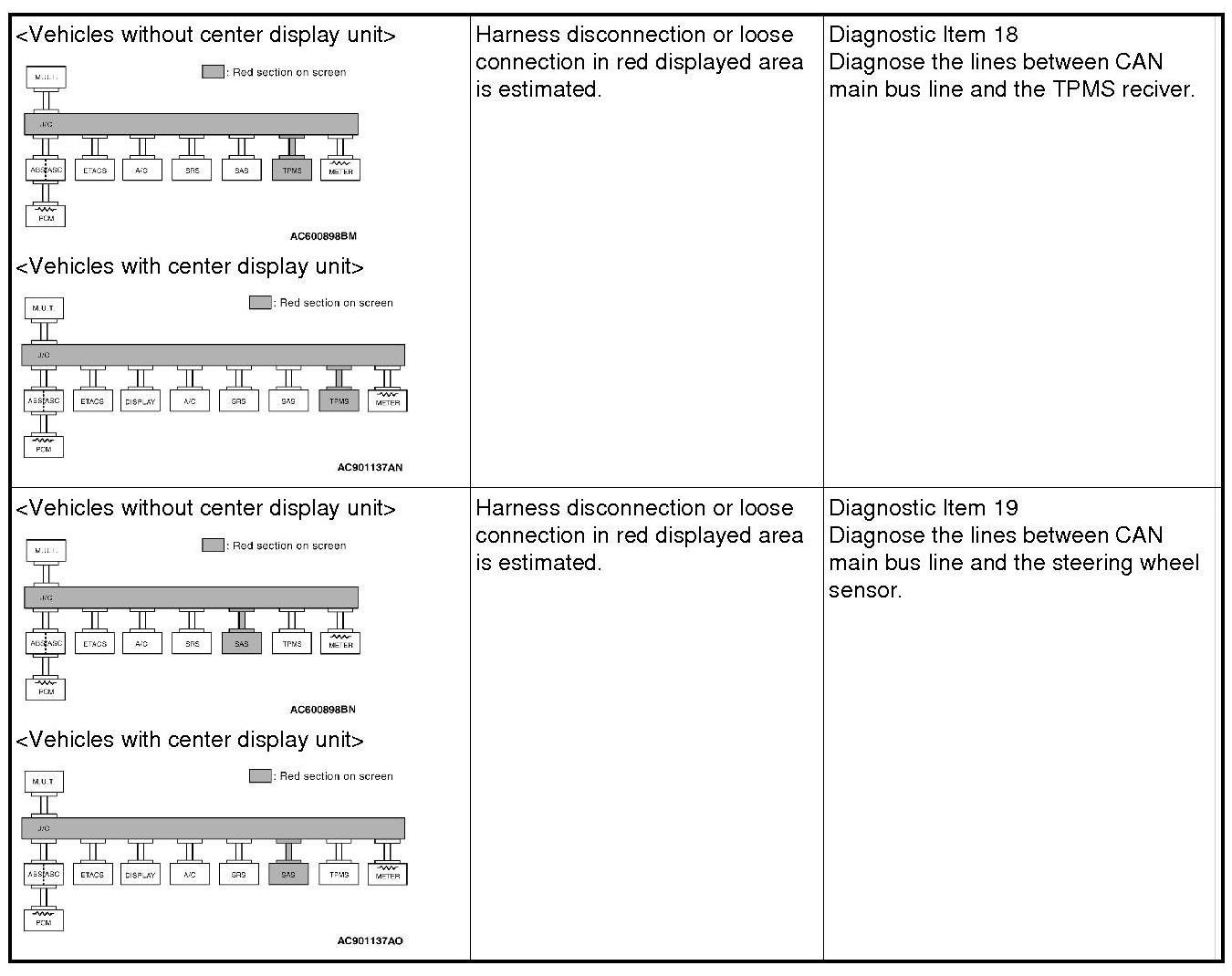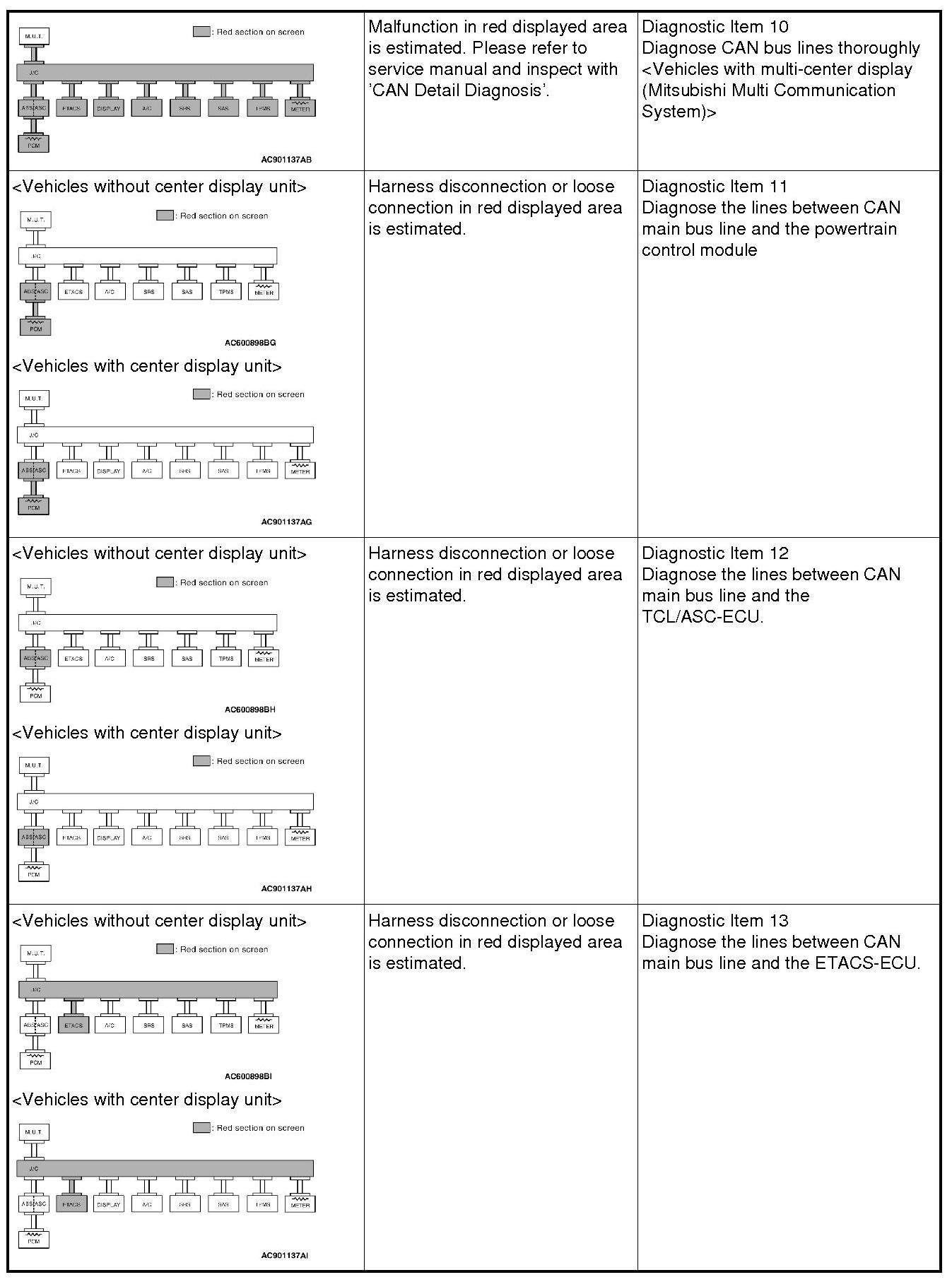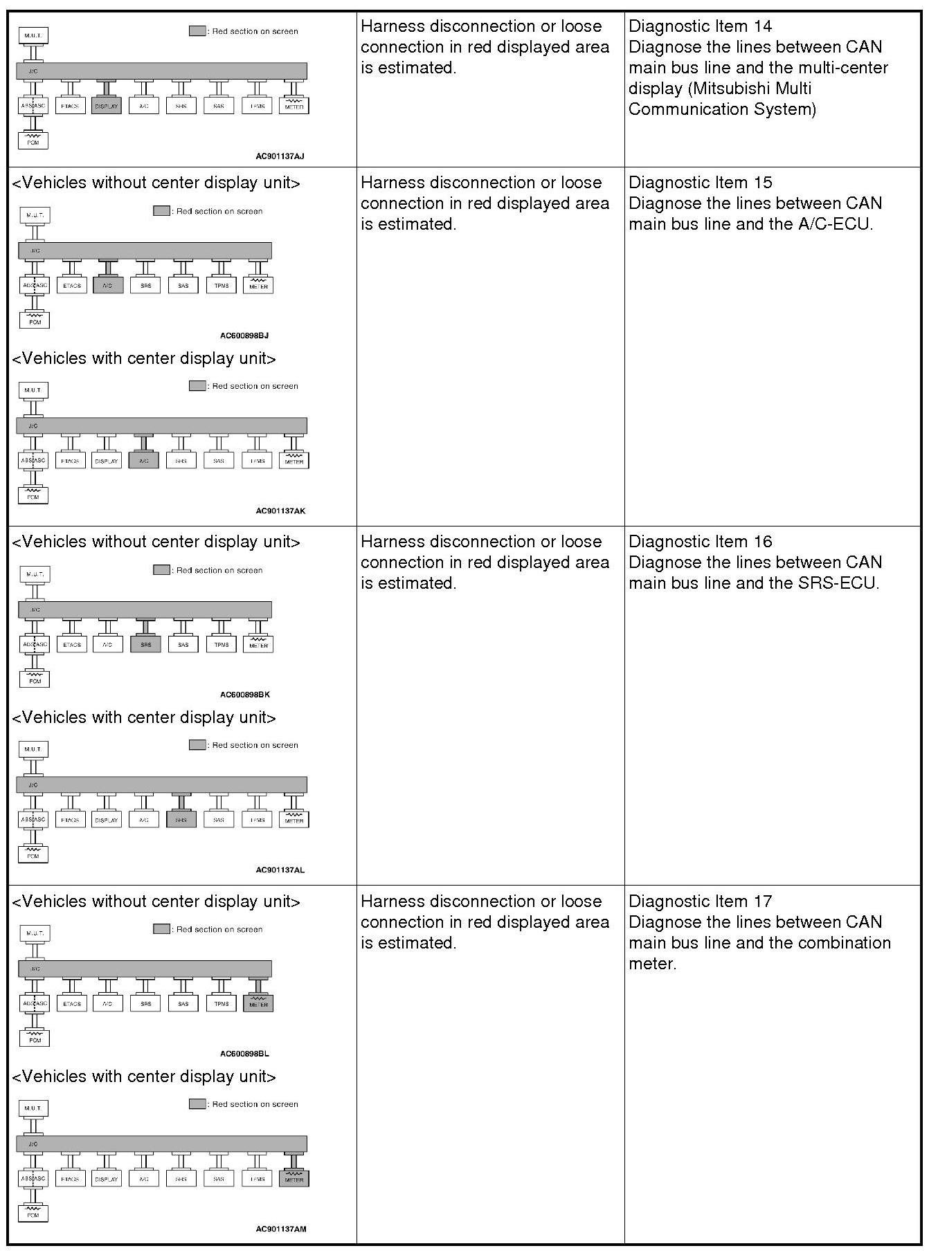 If a trouble cannot be solved after performing the diagnosis other than item 15, diagnose CAN bus line thoroughly.